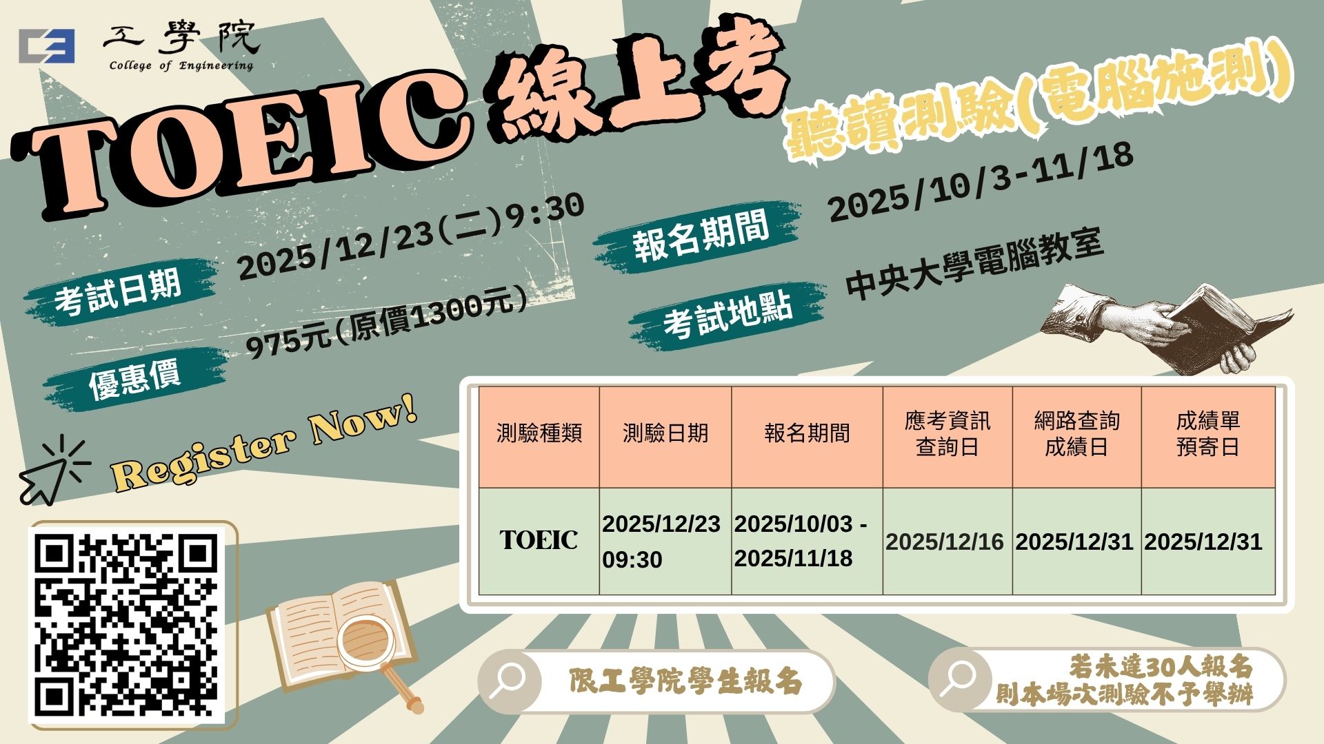 📢 國立中央大學工學院 TOEIC 到校數位測驗