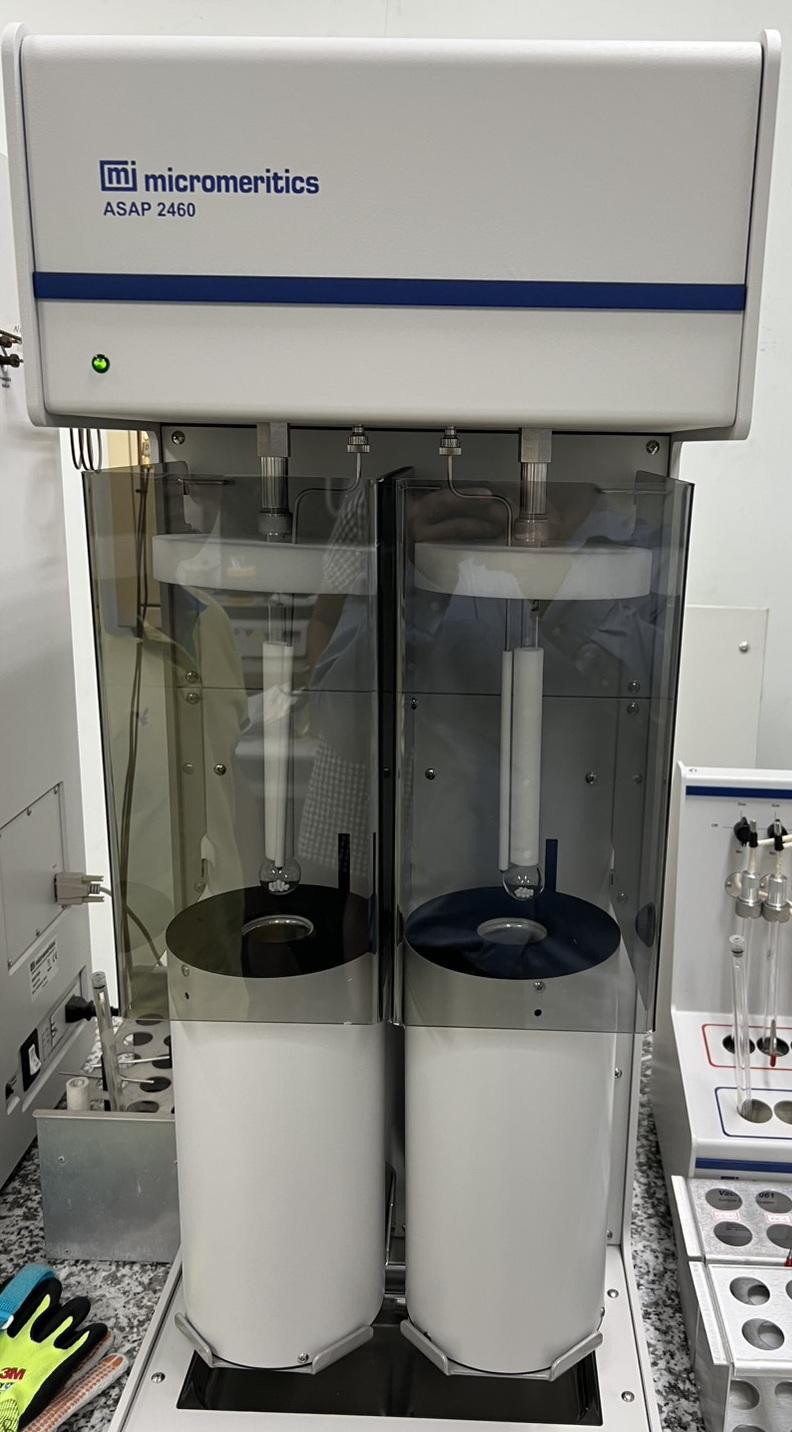 美國 Micromeritics 公司所生產之 ASAP 2020表面積與孔徑分析儀,為一款高精度的氣體吸附等溫線量測儀器,廣泛應用於材料科學、奈米技術、觸媒研發與多孔性材料特性分析等領域。其主要功能包括比表面積分析、孔容與孔徑分佈分析,特別適合於中孔(mesopore)材料之物性量測。